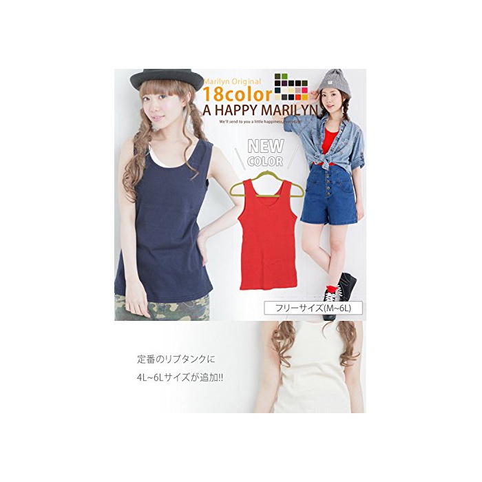 원본상품명: 115137400232F (ハッピマリリン)A HAPPY MARILYN 選べるサイズ M~6L ストレッチ 伸びる タンクトップ キャミソル トップス インナキャミ 無地 大きいサイズ レ