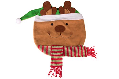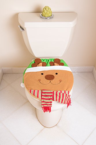 GREAT HOLIDAY DESIGN: This Christmas toilet seat cover features a great design of a smiling reindeer wearing a green stocking cap and a red and green scarf. No matter what your decoration style, this cover is sure to fit in perfectly! Measures 14" x 14" with the ability to stretch