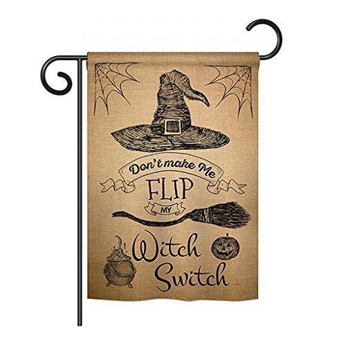 -. Binding : Kitchen -. Brand : Ornament Collection -. Color : Mutli -. EAN : 0740812209832 -. Feature : made of durable polyester 300 d construction helps resist the wear and tear from frequent use / double-sided print design on garden flag provides viewing correctly readable single side / double stitching panels on multiple rows and high quality sleeve to provide lasting strength / Vibrant colors with UV-resistant maintains its colors all season long / Fits all standard Hardware flagpoles or stands, sold separately -. Label : Ornament Collection -. Manufacturer : Ornament Collection -. Model : HO-G-191031-IP -. MPN : OC-HO-G-191031-IP-P300-DS01-US -. NumberOfItems : 20 -. PartNumber : OC-HO-G-191031-IP-P300-DS01-US -. ProductGroup : Lawn & Patio -. ProductTypeName : OUTDOOR_LIVING -. Publisher : Ornament Collection -. Size : 13"x 18.5"x 0.2" -. Studio : Ornament Collection -. Title : Flip my Witch Switch - Fall Halloween Decoration - 13" x 18.5" Impressions Garden Flag by Ornament Collection - US made -. UPC : 740812209832