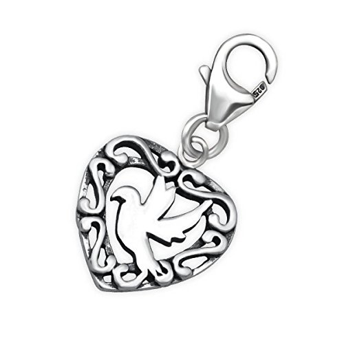 -. Title : Pro Jewelry .925 Sterling Silver Dangling "Decorated Heart w/ Dove Bird " Charm Bead 7902