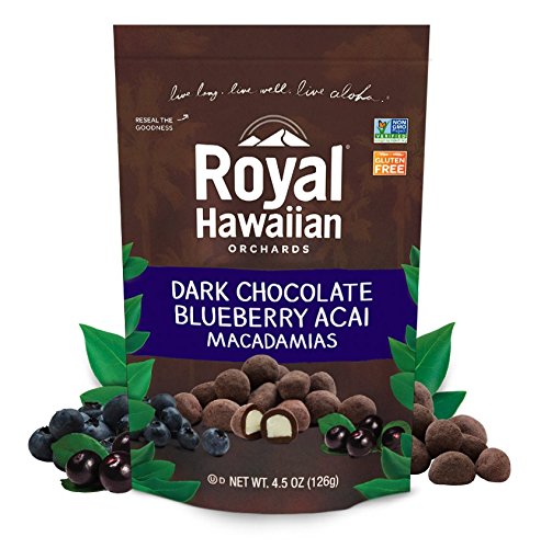 Royal Hawaiian Orchards Dark Chocolate Blueberry Acai Macadamias, Pack of 6/4.5 Ounce Bags