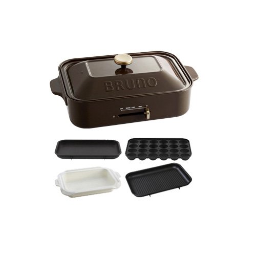 Bruno BRUNO 콤팩트 핫 플레이트+세라믹 코트과+그릴 플레이트 3점 세트 (브라운)