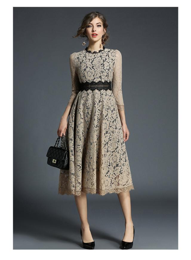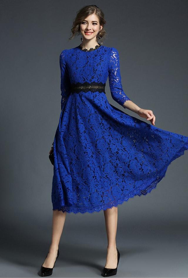 レース 刺繍 スカラップカット ワンピース ドレス 結婚式 二次会 ディナー パーティー 女子会 卒業式 謝恩会 コンサート