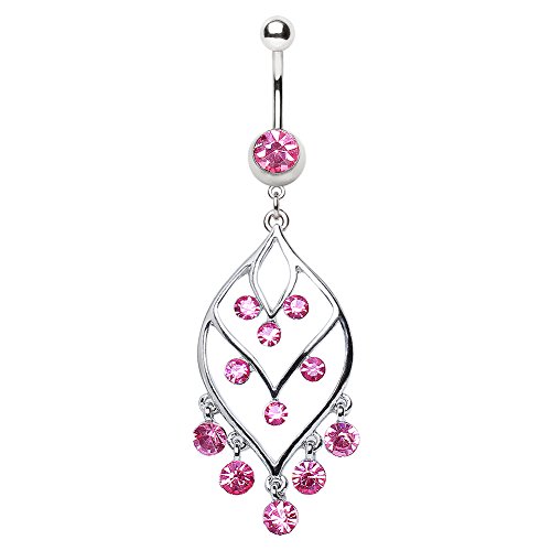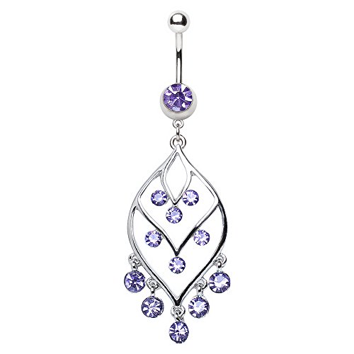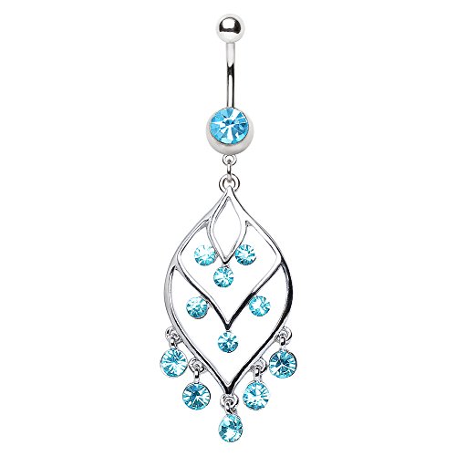 316L Navel Ring with Fancy Gemmed Leaf Chandelier