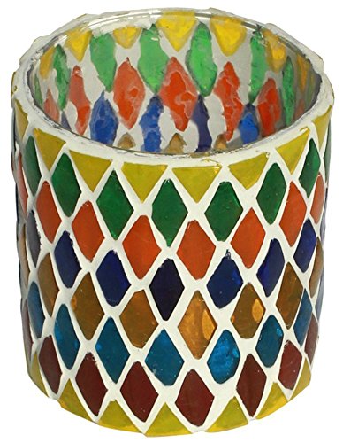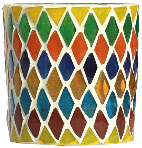 - Feature : Exclusive Design / Beautiful big glass candle holder with diamond design. Adorn your living room, dining room and outdoor with this graceful tealight holder / Handmade in glass mosaic by expert artisans in, India / Holds a votive or tealight candle. Perfect gift idea for housewarmings and other occasions / Dimensions: Length - 3 x Width - 3 x Height - 3.1 (Inches)