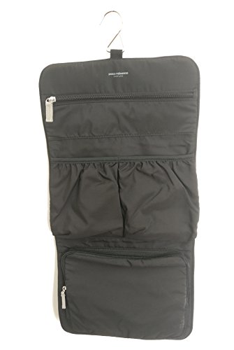 Paco Rabanne strives to create premium toiletry bags that blend the sophistication and style of tailored suits with the organization of traditional travel kits. Unlike single-compartment kits, the Paco Rabanne toiletry offers several compartments it designed specifically with today's traveler in mind. The bag's compact size works best with travel sized bottles The hanging hook allows you to fully display the bag from a towel rack or coat hook. When not in use, it tucks away neatly inside the bag.