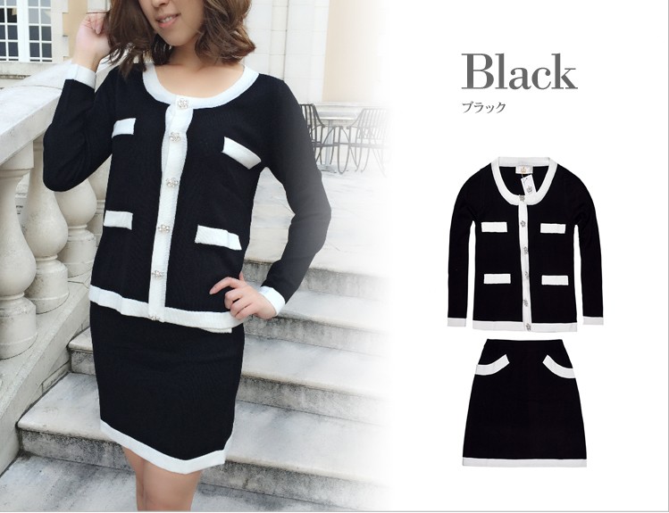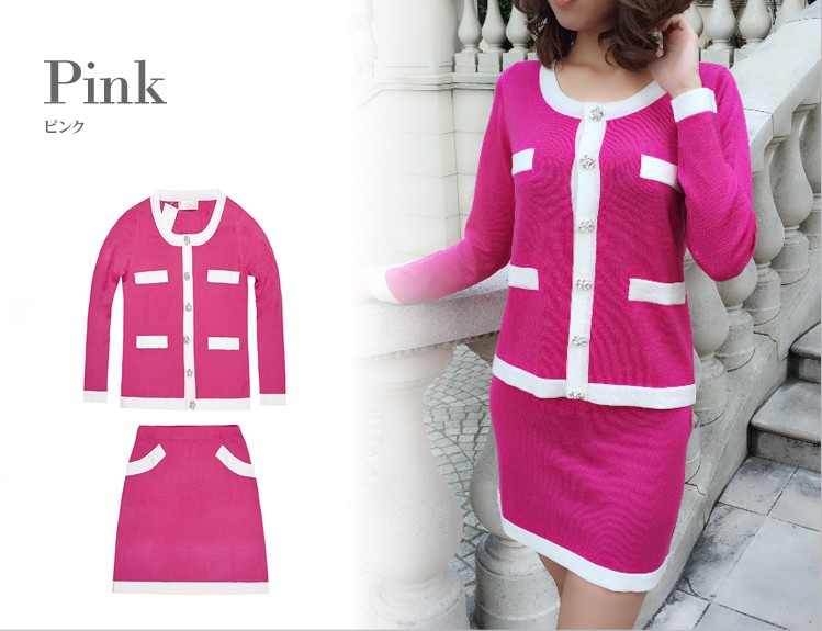 『いまなら送料無料』オリジナルニットセット シルクのような素材感 大人可愛らしいフラワーボタンがキラキラ☆オリジナルバイカラーセットアップが登場です!!![]() |