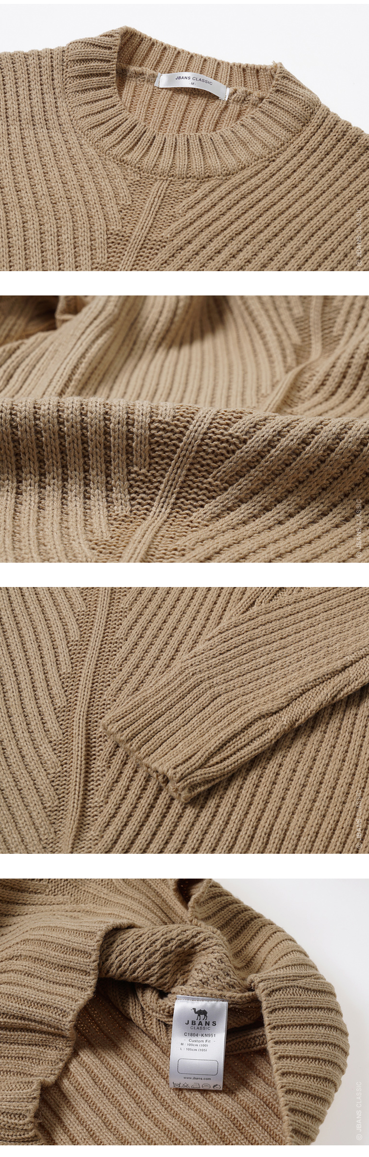 트랜디한 사선패턴조직이 매력적인 단정하고 깔끔한 라운드니트입니다. 베이직한 컬러로 레이어드 하기 좋은 베이지, 블랙컬러로 구성했습니다. 조직감이 좋고 포근한 느낌이 매력적으로, 솔리드셔츠나 패턴셔츠와 다양하게 레이어드가 가능하고, 살짝 슬림한 핏감으로 슬랙스와 함께 댄디하게 코디해도 좋고, 데님과 함께 연출해도 매력적인 상품입니다. 니트상품은 니트용세제나 중성세제를 이용해서 가볍게 손세탁을 하고, 니트전용 세탁망을 이용해서 탈수해야 보풀이나 변형을 줄일 수 있습니다.