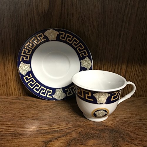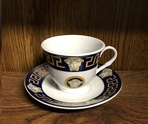 Product Description Navy Gold 12 pcs Espresso Cup Saucer Set Service for 6 Persons, Gift Boxed. Each cup hold about 80 ml. Greek Key Design, 0