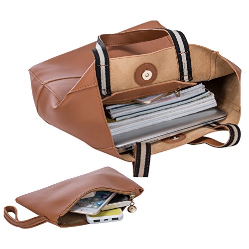 Product Description Made of elegant PU leather,tough nylon car suture,high-end hardware,padded nylon lining. Large handbag with a small purse bag. Pockets:A main pocket and interior zipper pocket for phone and cards. Classic fashion and stylish design,perfect to match with variety styles of clothes,dressing up for any occasion.