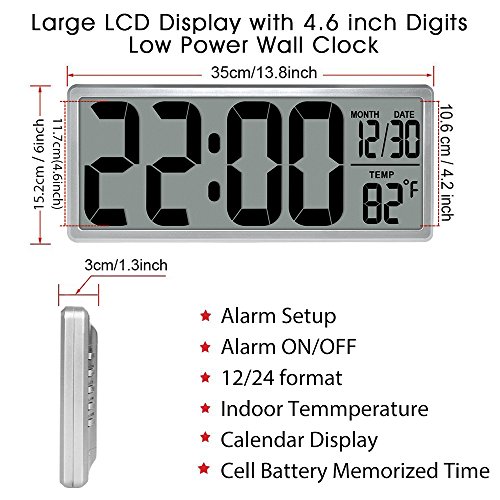 Extra Large Display and Digits : Time digits measurement close to 4.6 inches tall,easy to read even in a very far distance.