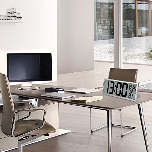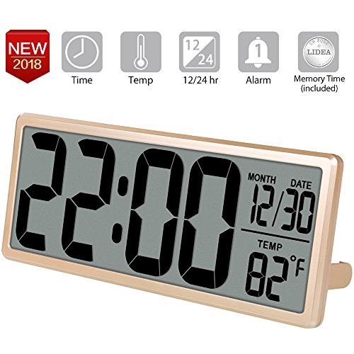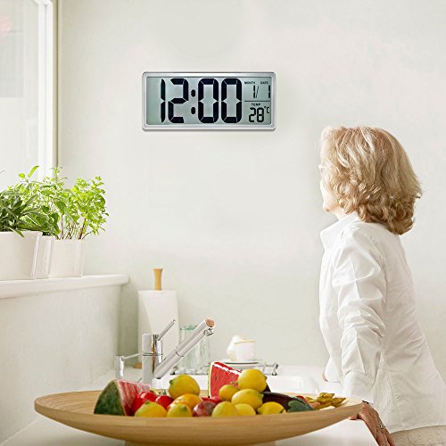The large display digital clock features a large easy-to-read LCD screen, loud alarm and snooze button,temperature display, wall hang or table stand.