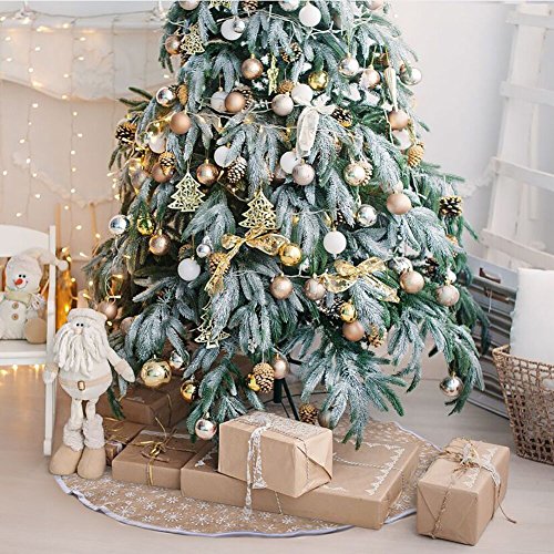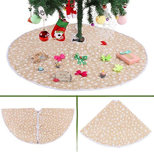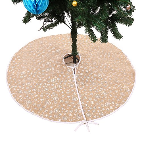 🐝UNIQUE DESIGN-with quality material and fine workmanship, the treeskirt is made of popular burlap material with white snowflake printed,adding a perfect finishing touch and classic Christmas atmosphere.