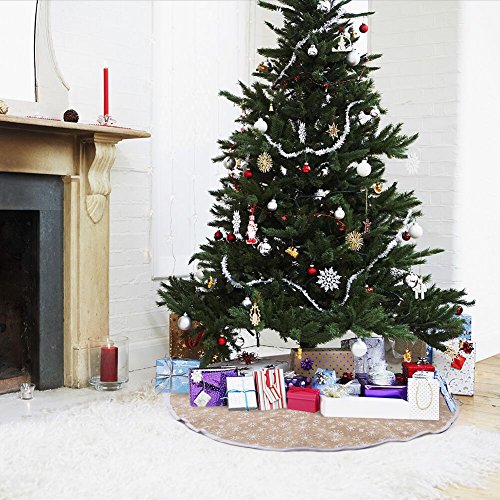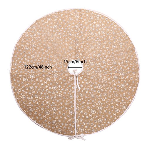 🐝ATTRIBUTE-made of high quality linenand measures 48 inch(4ft )indiameter with snow pattern printed, the tree skirt can fitfor a traditional normal sized Christmas tree well.