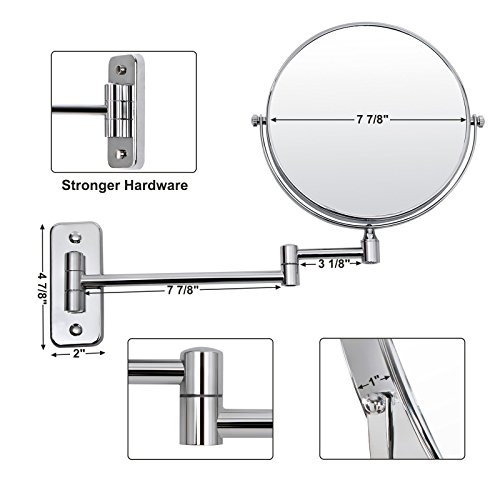 SONGMICS 7x Magnifying Wall Mount Makeup Mirror 8-Inch Two-Sided Extendable Bathroom Vanity Mirror Chrome UBBM713