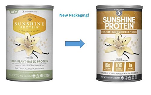 -. Title : Designer Protein Sunshine 100% Plant-Based Nutritious Protein, Vanilla, 12 Ounce