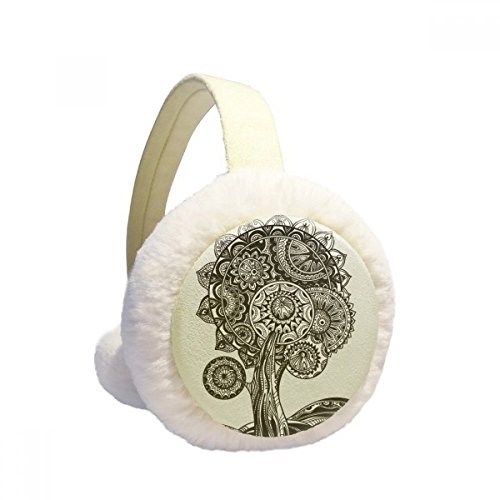 (DIYthinker)/Accessories/Cold Weather Accessories/DIRECT FROM USA/Black White Flower Sunflower Plant Winter Earmuffs Ear Warmers Faux Fur Foldable Plush Outdoor Gift