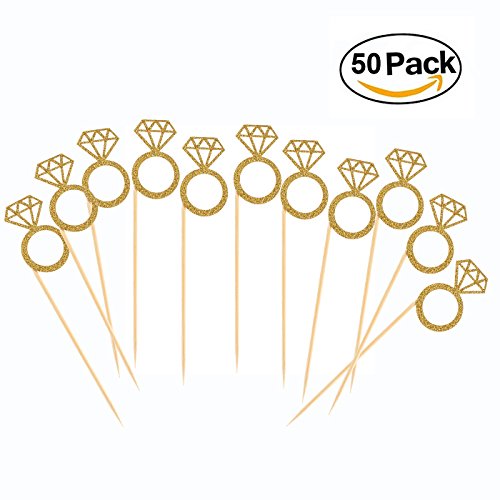Come to with 50 pack gold glitter Diamond Ring cupcake toppers, suitable size design, give your cake a perfect display