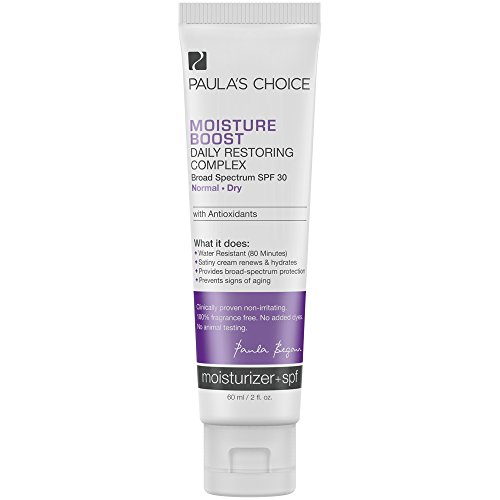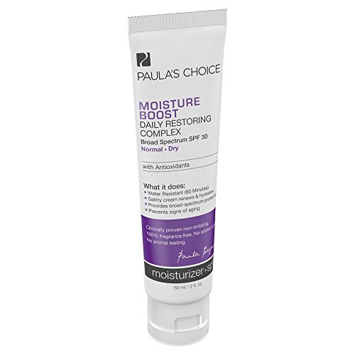 - Paula's Choice Moisture Boost Daily Restoring Complex SPF 30 Moisturizer provides effective UVA/UVB protection (Avobenzone) plus daily hydration for a healthier, younger looking complexion, and has a creamy texture that works beautifully under makeup.