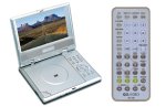 -. Feature : Portable DVD player with 7-inch, widescreen (16:9) TFT LCD screen; 7.48 x 1.06 x 5.59 inches (W x H x D) / Offers anti-skip protection; plays DVD-Video, video DVD-R/-RW, CD, MP3 CD, JPEG and Kodak Picture CDs / Dolby Digital 5.1-channel surround-sound passthrough for immersive audio from compatible AV receivers and surround speakers / Switchable AV input/output lets you hook up a camcorder or a gaming console / Includes built-in stereo speakers, AC and DC power adapters, and full-function remote control