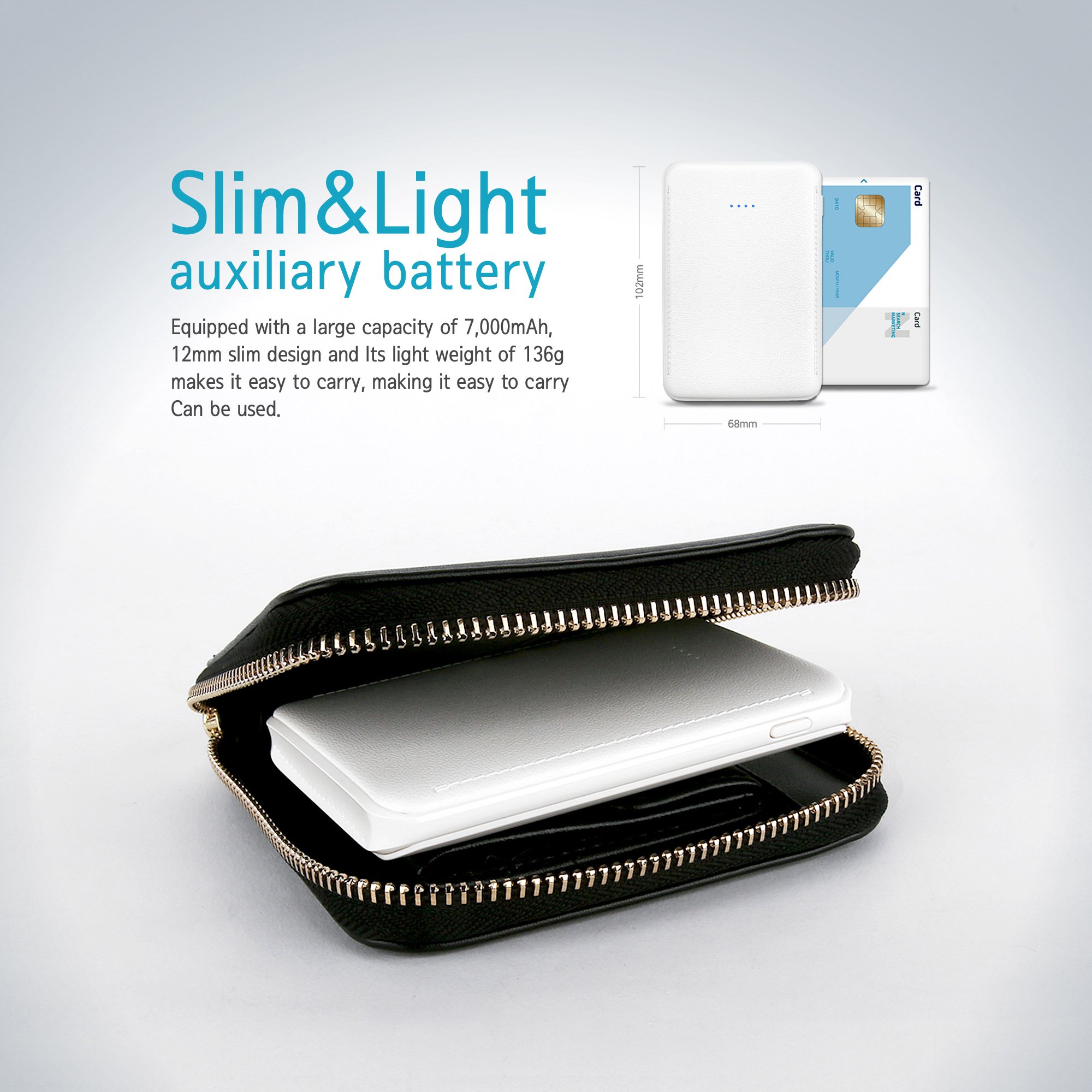 It is a mobile battery with a large capacity and light weight with a slim design.