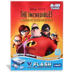-. Feature : Travel with the Incredibles to an exotic island for superhero training! / You'll gain entry into a secret training base where you can perfect your super powers while learning science, electricity, states of matter, math skills, measurement, speed, distance, and time! / You'll also get the chance to build your very own uniform and machine! / Three zones of play include: Game Zone, Knowledge World and CreativeWorkshop / For use with V.Flash Home Edutainment System (sold separately)