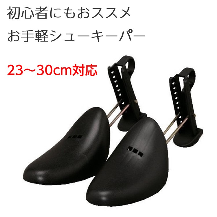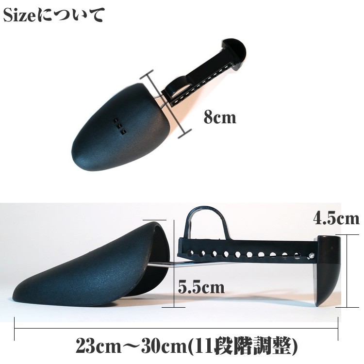 商品について■11段階で調整可能■履きジワを伸ばし、靴の型崩れを防止します■プラスチック製で軽量なので、旅行や出張など靴を持ち運ぶ際に大変便利です。■ビジネス、カジュアルシューズ等使用方法■帰宅後すぐにセットするのが効果的です。ご使用上の注意■出し入れの際はスプリング部分の取り扱いに注意して下さい。■サイズが合わない場合は無理に押し込まないでください。主要素材■プラスチック製