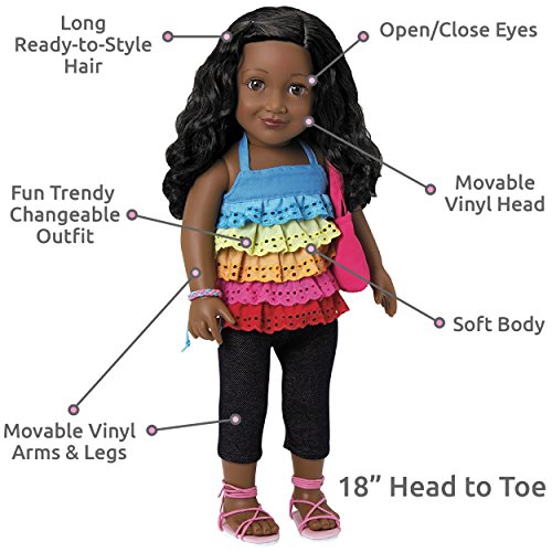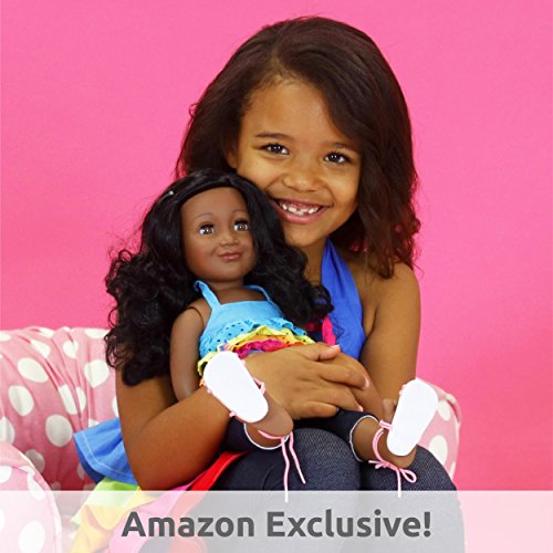 An Amazon exclusive! Discover the Amazing Girls play doll toys and join the fun! They’re a group of truly sweet and amazing girls who love style and adventure, but mostly they love being best friends forever. Jada is loyal and smart and loves to bake – especially cookies! Her favorite colors are the colors of the rainbow – she says they make her smile. Jada stands 18” tall and is the perfect size for dressing and styling. With her friendly brown eyes that open and close and wavy black hair, you’re sure to become best friends, too! Outfit includes a colorful ruffled shirt, leggings, sandals, and matching purse. Ages 6+