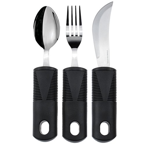 Adaptive Utensils by Vive - Arthritis Aid Silverware Set for Parkinsons, Hand Tremors - Easy Grip for Shaking, Elderly & Trembling Hands - Heavy Stainless Steel Spoon, Fork & Knife Included