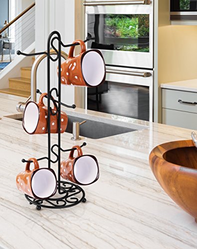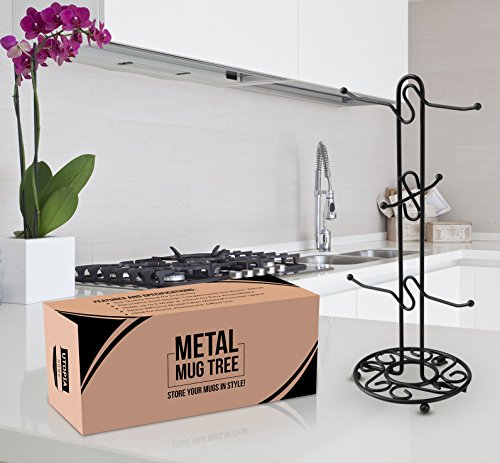Stylishly Crafted Mug Tree for Proficiently Managing Cups and Mugs A stylishly crafted mug tree to have in possession that not only assist in organizing your tea and coffee cups/mugs proficiently but also gives it a presentable look. It’s a space-efficient model with dimensions of 17 x 16 x 40 cm, assuring that it requires minimal table/counter space at the time of placement. It can hold up to six standard size cups/mugs at a time, making it a perfect choice for a small/medium size family. ? Decorative Swirl Design Made of Top Quality Metal It's solidly constructed using top quality metal which ensures that the mug tree stays in great shape for long so that you can have the best use of it. The tree consists of six branches, and each branch is tilted upwards with a circular knob at the end to ensure that the cup stays in place without falling off which may damage the cup’s property. Also, the decorative swirl design with black finishing complements any room decor well to create an appealing visual impact while the tree is sitting at the kitchen/bar counter, coffee table. ? Best Fit for a Small Audience It’s an ideal choice for catering to the tea/coffee requirements of a small audience as it can entertain up to six individuals at a time. It’s great for home, restaurant, and office use. 0 |