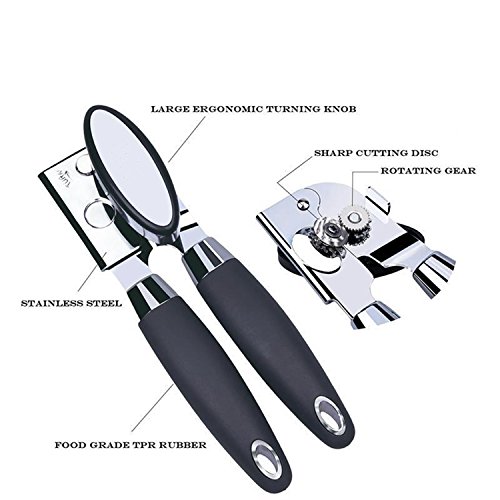 BIG ERGONOMIC KNOB-The combination of the Smoothly-rotating wheel and big knob allow you to open cans easily, requires minimal effort without stress to wrists.The best manual can opener option for ARTHRITIS,SENIORS and for people with weak hand strength.