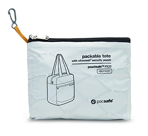 -. Feature : Foldable, packable, lightweight 25-liter tote bag; perfect for side day trips, and packs small to fit into carry-on or lage / Lightweight, hidden eXomesh Slashguard stainless steel wire mesh embedded into pouch helps protect against slash-and-run theft / Smart zipper security clips help secure bag from opportunistic thieves and helps prevent pickpockets / Easy-carry handles; side stretch pocket for water bottle / Packs down into a 6 x 8 x 2-inch pouch