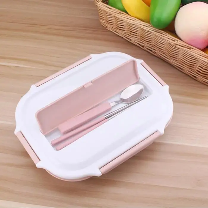 Type B: 1. Seal buckle; 2. Silica gel seal; 3.304 stainless steel material, safe and healthy; 4. With our leak-proof lid, food will keep warm and fresh; 5.With a grid of cutlery.