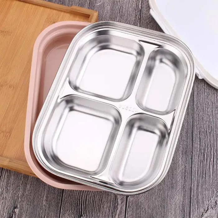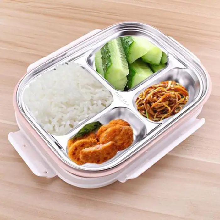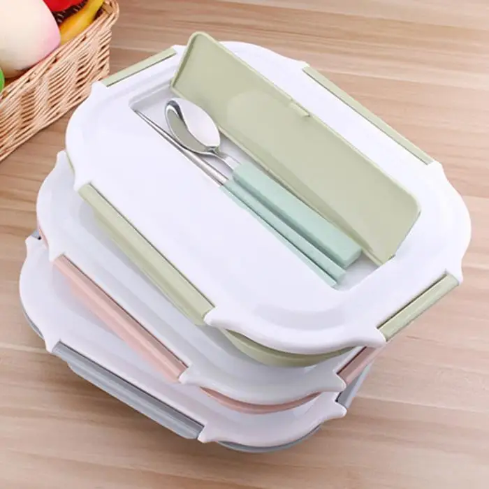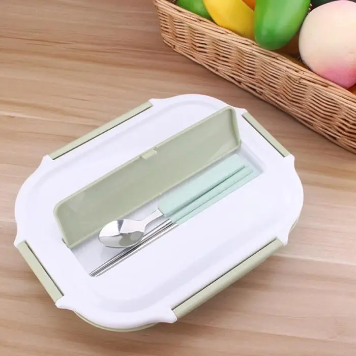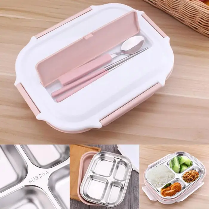 Portable Rectangular 4 Grids Lunch Box With Spoon for Kids Student Food Container Lunch Box MYDING