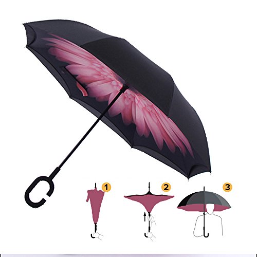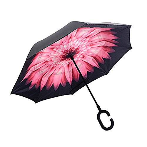 -. Binding : Misc. -. Brand : Eklead -. Color : Pink -. EAN : 0190497956185 -. Feature : Unique design double layer inverted umbrella: when open from outside to inside;when close form inside to outside / Fashion C shape handle Design :just hang on your wrist and leave your hand free / User-friendly:the embedded push-button switch is easy to operate and will not pinch / Quality Materials:made from aluminum alloy shaft,water repellent-coated,breathable double layer canopy and smooth top / Windproof and waterproof,uv protection,perfect for rainy day or sunny day,a creative gift for your loved one -. IsAutographed : 0 -. IsMemorabilia : 0 -. Label : Eklead -. Manufacturer : Eklead -. Model : EK-129-Pink -. MPN : EK-129-Pink -. PackageQuantity : 1 -. PartNumber : EK-129-Pink -. ProductGroup : Sports -. ProductTypeName : SPORTING_GOODS -. Publisher : Eklead -. Studio : Eklead -. Title : Windproof Reverse Folding Double Layer Inverted Umbrella,Eklead Inside Out Upside Down Rain Protection Compact Travel Umbrella with Flat Self-standing top and C-shaped Hands Free Handle (Pink) -. UPC : 190497956185