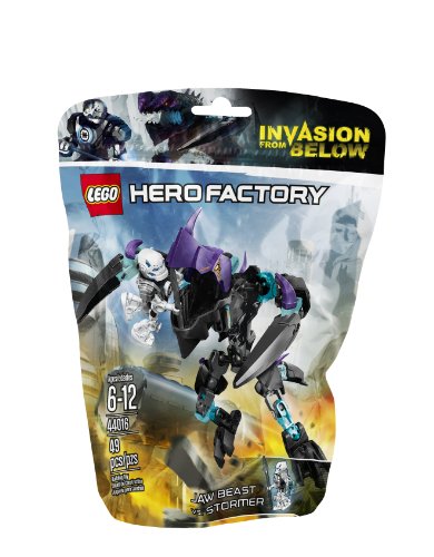-. Binding : Toy -. Brand : L.E.G.O -. EAN : 0673419207102 -. Edition : 1st -. Feature : Includes STORMER mini robot with a weapon and accessory / Features huge claws, snapping jaws and translucent elements; Also Includes a spear / Attack with the razor-sharp claws! Also includes com device to call for back-up! Trap STORMER in the powerful jaws! / Combine with 44020 FLYER Beast and 44021 SPLITTER Beast to create an even bigger beast using building instructions available at L.E.G.O.com/hero factory / Stands over 5" (13cm) tall -. Genre : strategy -. IsAdultProduct : 0 -. ItemPartNumber : 6058907 -. Label : L.E.G.O -. Manufacturer : L.E.G.O -. Model : 6058904 -. MPN : 6058907 -. PackageQuantity : 1 -. PartNumber : 6058907 -. ProductGroup : Toy -. ProductTypeName : TOYS_AND_GAMES -. Publisher : L.E.G.O -. ReleaseDate : 2014-03-01 -. Studio : L.E.G.O -. Title : L.E.G.O Hero Factory 44016 Jaw Beast vs. Stromer Building Set -. UPC : 673419207102 -. Warranty : No Warranty