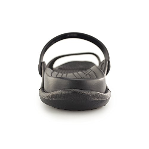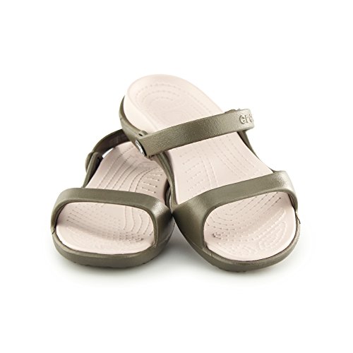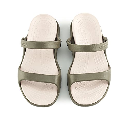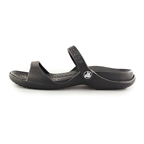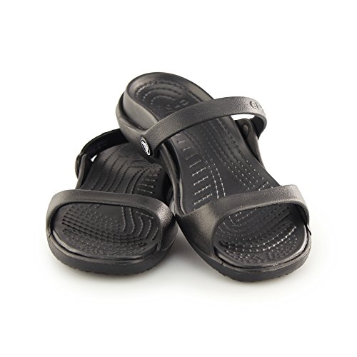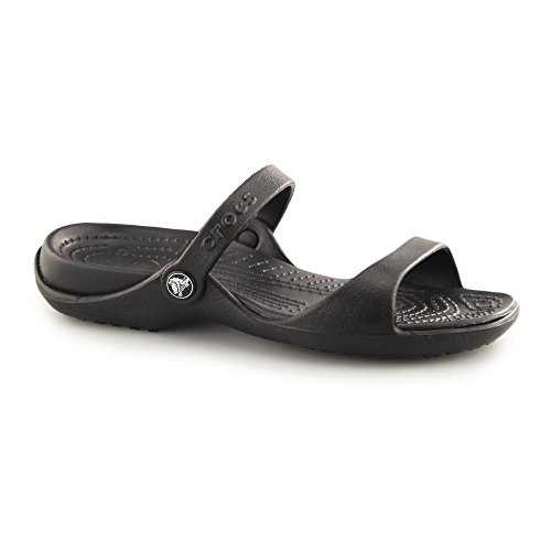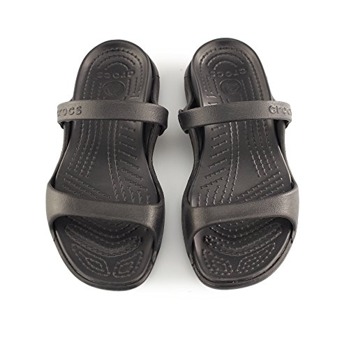 Amazon.com Product Description Been pounding the pavement looking for the perfect slide sandal? Well, Crocs ends your search with this sleek beauty. This streamlined slide features two top straps to keep the foot in place while the upper and sole have the classic Crocs construction that you can't live without. 0