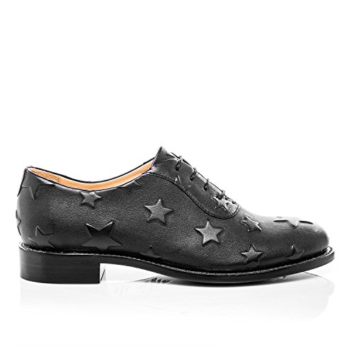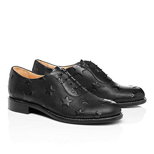 Product DescriptionBlack star-embossed Italian calfskin leather oxford from The Office of Angela Scott0