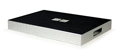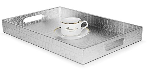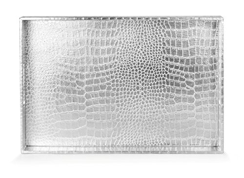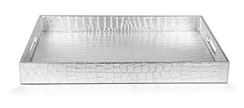 Beautiful Modern Elegant Silver 18"x12" Rectangle Glossy Alligator Croc Decorative Ottoman Coffee Table Perfume Living Dining Room Kitchen Serving Tray With Handles By Home Trends For All Occassion's