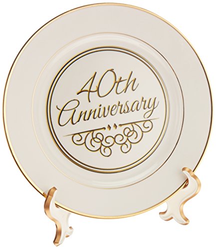 3dRose cp_154482_1 40th Anniversary Gift Gold Text for Celebrating Wedding Anniversaries 40 Years Married Together Porcelain Plate, 8-Inch