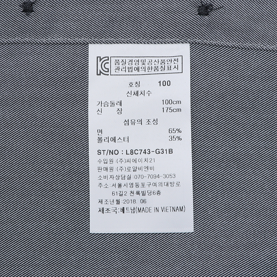 품번:L8C743-그레이 혼용률:면65%폴리35% 제조국:베트남