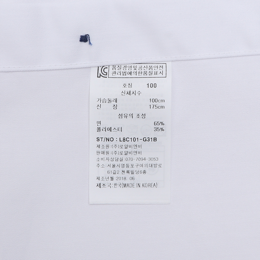 품번:L8C101-화이트 혼용률:면65%~폴리35% 제조국:한국