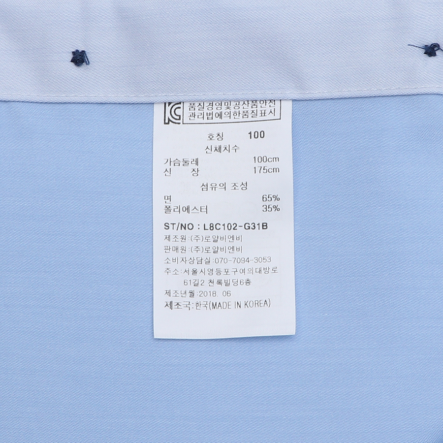 품번:L8C102-블루 혼용률:면65%폴리35% 제조국:한국