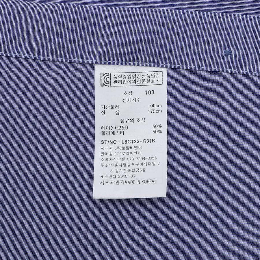 품번:L8C122-블루 혼용률:레이온50%폴리50% 제조국:한국
