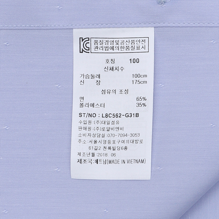 품번:L8C562-블루 혼용률:면65%폴리35% 제조국:베트남
