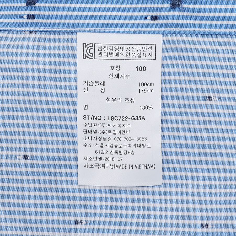 품번:L8C722-블루 혼용률:면100% 제조국:베트남