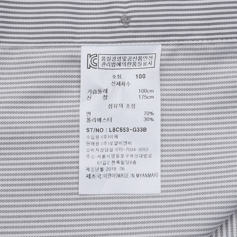 품번:L8C653-그레이 혼용률:면70%폴리30% 제조국:미얀마