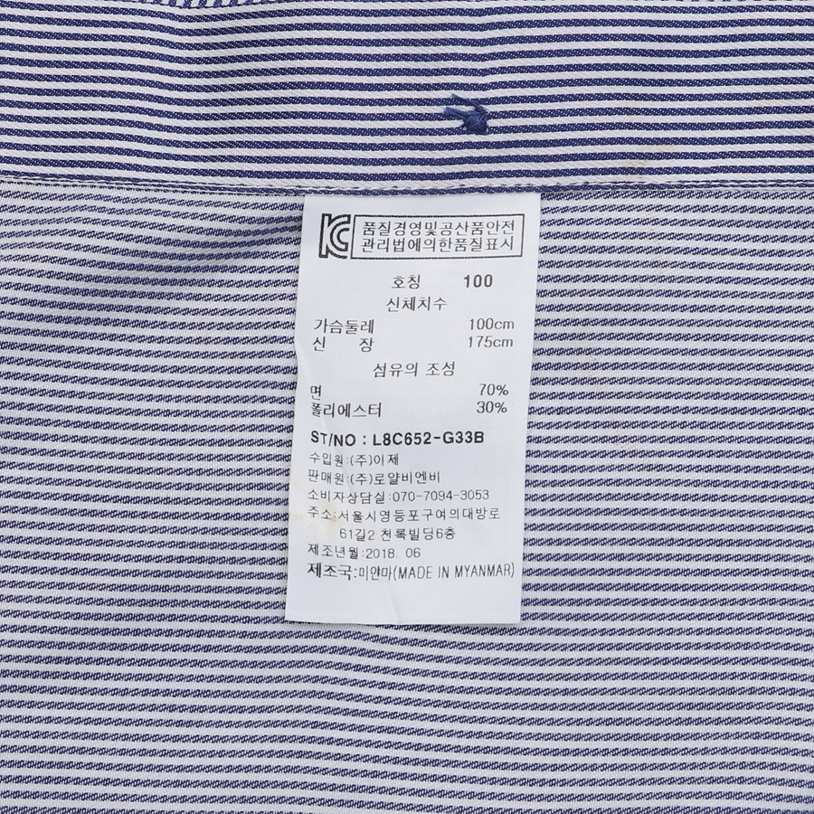 품번:L8C652-블루 혼용률:면70%폴리30% 제조국:미얀마