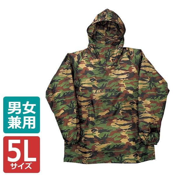 風よけ汚れよけに最適です。ひっくり返すと胸ポケットに本体を収納できますので、持ち運びにも便利です。 製造国:ミャンマー、中国 素材・材質:ナイロン100% 仕様:手洗い可 ※サプライヤー直送品 ご注文後2~3営業日後の出荷となります【商品名】カジメイク 迷彩ヤッケ グリーン 5L 2217