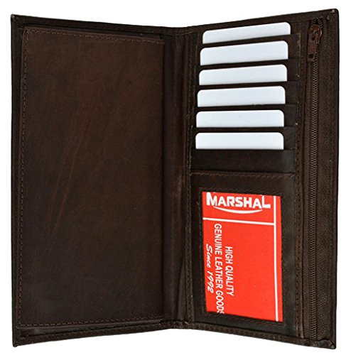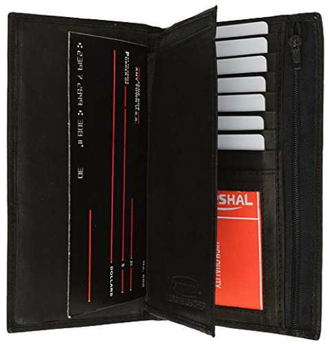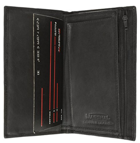 Binding : Apparel Product Description Deluxe Checkbook Cover and Wallet by Marshal wallet leather. This finely constructed wallet is made of soft full grain leather. It has six credit card slots, an ID window, three currency or receipt compartments, a removable checkbook cover, a zippered pocket, and a plastic insert that holds six cards or pictures. Closed, it measures 6 3/4" across and 3 1/2" high. Suitable for top load, side load and carbon checks. Great item! Available in black, brown, burgundy, or tan. 0
